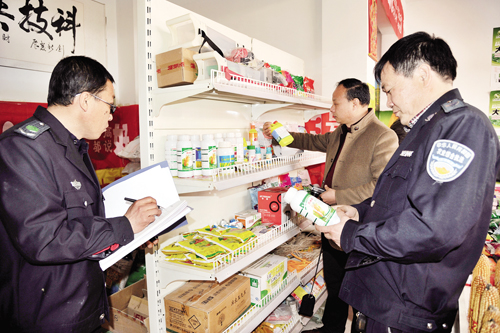 連日來,代縣農(nóng)業(yè)綜合執(zhí)法大隊開展農(nóng)資打假專項整治行動,對全縣4個農(nóng)資市場和30個農(nóng)資經(jīng)營門店進(jìn)行了地毯式突擊檢查,圖為對農(nóng)資農(nóng)藥門店進(jìn)行檢查。(石俊文 攝)