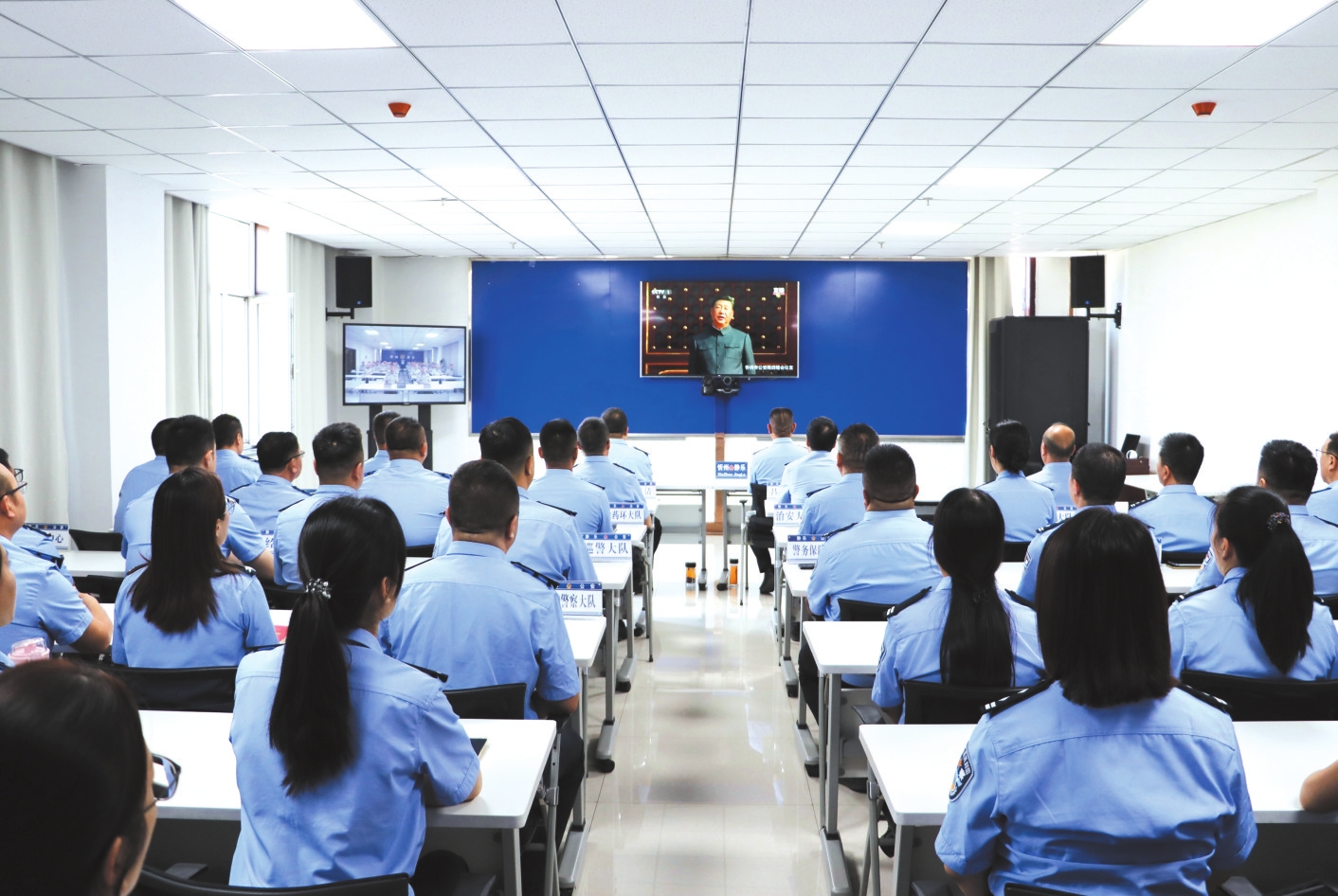 靜樂(lè)縣公安局干警觀看紀(jì)念大會(huì)。喬秀乾攝