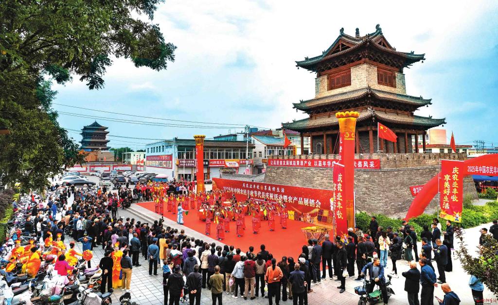 近日,“慶農(nóng)業(yè)豐收,享美好生活——2025年中國農(nóng)民豐收節(jié)代縣慶?;顒?dòng)暨農(nóng)產(chǎn)品展銷會(huì)”在代縣鐘樓廣場(chǎng)舉行。本次活動(dòng)不僅呈現(xiàn)了豐富多彩的文藝節(jié)目,還設(shè)有彰顯本地特色的黃酒展區(qū)、非遺展區(qū),以及各鄉(xiāng)鎮(zhèn)特色農(nóng)產(chǎn)品展區(qū),吸引了眾多游客。(王晉東攝)