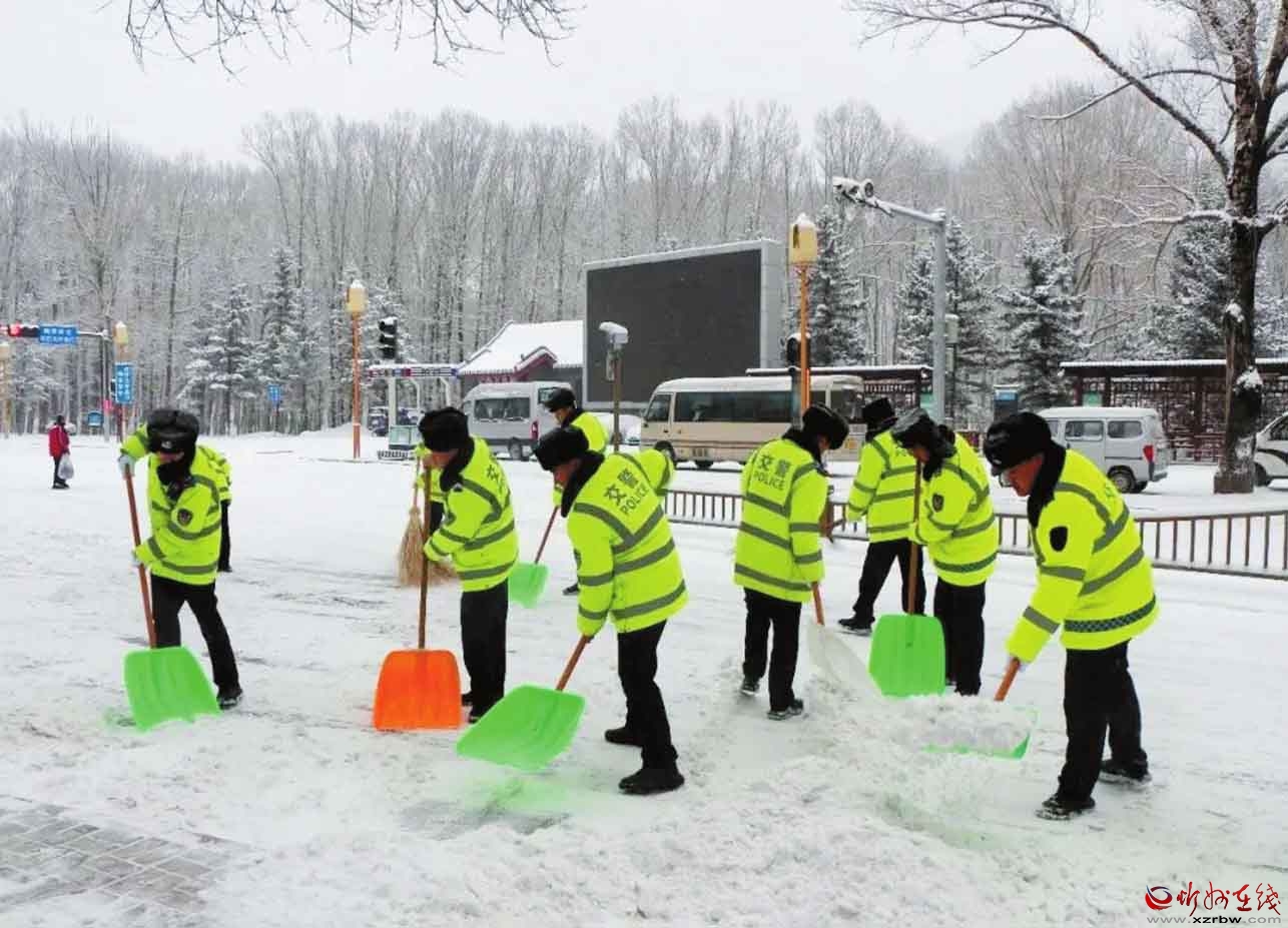 11日傍晚,景區(qū)交警大隊啟動惡劣天氣應急預案,堅持“警力跟著雪情走、管控跟著風險走”,對西線、北線等重點路段實施臨時交通管控,并將警力精準投放到主干道及各關鍵節(jié)點。12日上午,執(zhí)勤民警、輔警頂風冒雪,奮戰(zhàn)在清雪除冰第一線。風雪中,一抹抹流動的“熒光綠”成為最醒目的安全坐標,通過現(xiàn)場疏導、隱患排查與實時提示,全力筑牢道路交通安全防線。