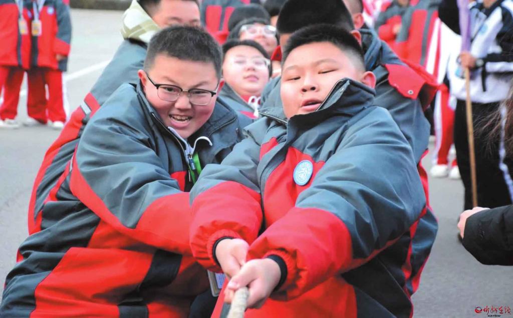 近日,忻州市北方初級中學舉行了冬季拔河比賽。比賽哨聲一響,賽場瞬間沸騰,參賽隊員們緊握長繩,雙腳蹬地,身體后傾;老師們化身為啦啦隊長,揮動雙臂,聲嘶力竭地為隊員們指揮節(jié)奏;各班同學則自發(fā)組成陣容強大后援團,將現(xiàn)場氛圍一次次推向高潮。(記者馮偉倫攝)