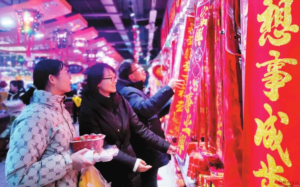 2月9日,顧客在忻州城區(qū)家家利超市選購(gòu)春聯(lián)。春節(jié)的腳步越來越近,我市各大超市和集貿(mào)市場(chǎng)的各式春聯(lián)、生肖貼畫等春節(jié)飾品琳瑯滿目,處處洋溢著祥和喜慶的節(jié)日氛圍。(宮清華攝)