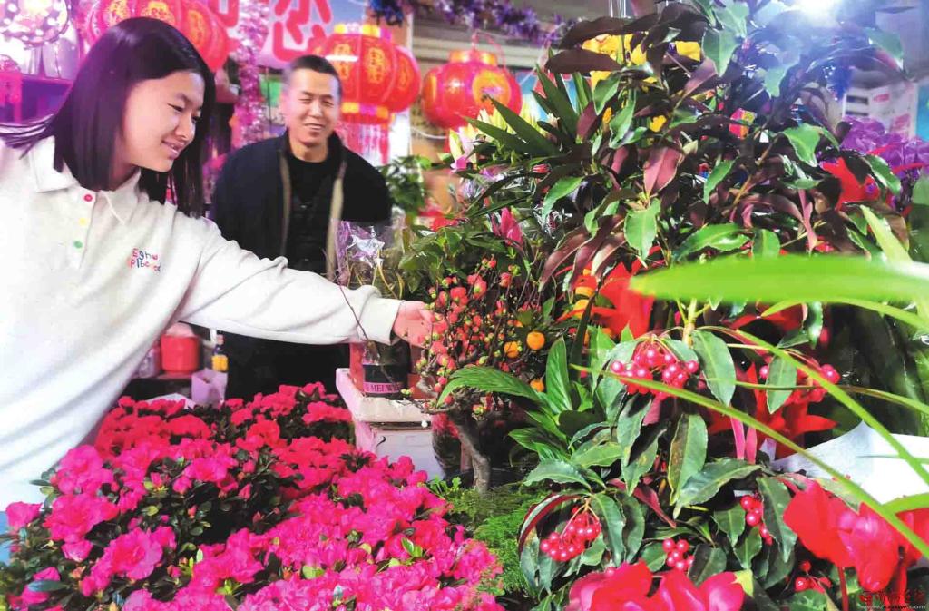2月12日,市民在忻州城區(qū)長(zhǎng)征后街花店選購(gòu)鮮花,為即將到來的馬年春節(jié)營(yíng)造喜慶熱鬧的氛圍。(