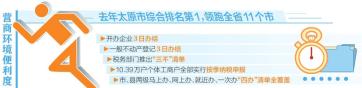 近日,記者從太原市政府新聞辦召開的新聞發(fā)布會上獲悉,山西省營商環(huán)境整體評估報告顯示,去年太原市營商環(huán)境便利度綜合排名第1,領(lǐng)跑全省11個市;在國家發(fā)改委組織的對包括直轄市、計(jì)劃單列市、省會城市在內(nèi)的41座城市進(jìn)行的營商環(huán)境評價中,太原市營商環(huán)境便利度獲評優(yōu)良。