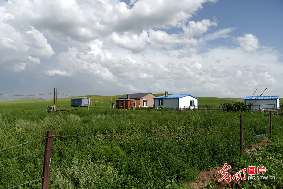 在其日麥拉圖家附近還有三所小房子,這是其日麥拉圖給自己的三個(gè)兒子準(zhǔn)備的。“兒子們都在旗里買了新房子、新車子,有時(shí)候也會(huì)帶著兒媳婦、孫子來牧場(chǎng),和我們一起養(yǎng)牛、養(yǎng)馬。”圖為2020年8月2日,其日麥拉圖家。(潘迪攝/光明圖片)