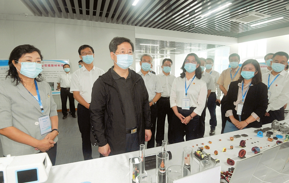 八月十七日,省委書記樓陽生在呂梁經(jīng)濟技術(shù)開發(fā)區(qū)數(shù)字經(jīng)濟產(chǎn)業(yè)園察看入駐企業(yè)產(chǎn)品展示。本報記者史曉波攝