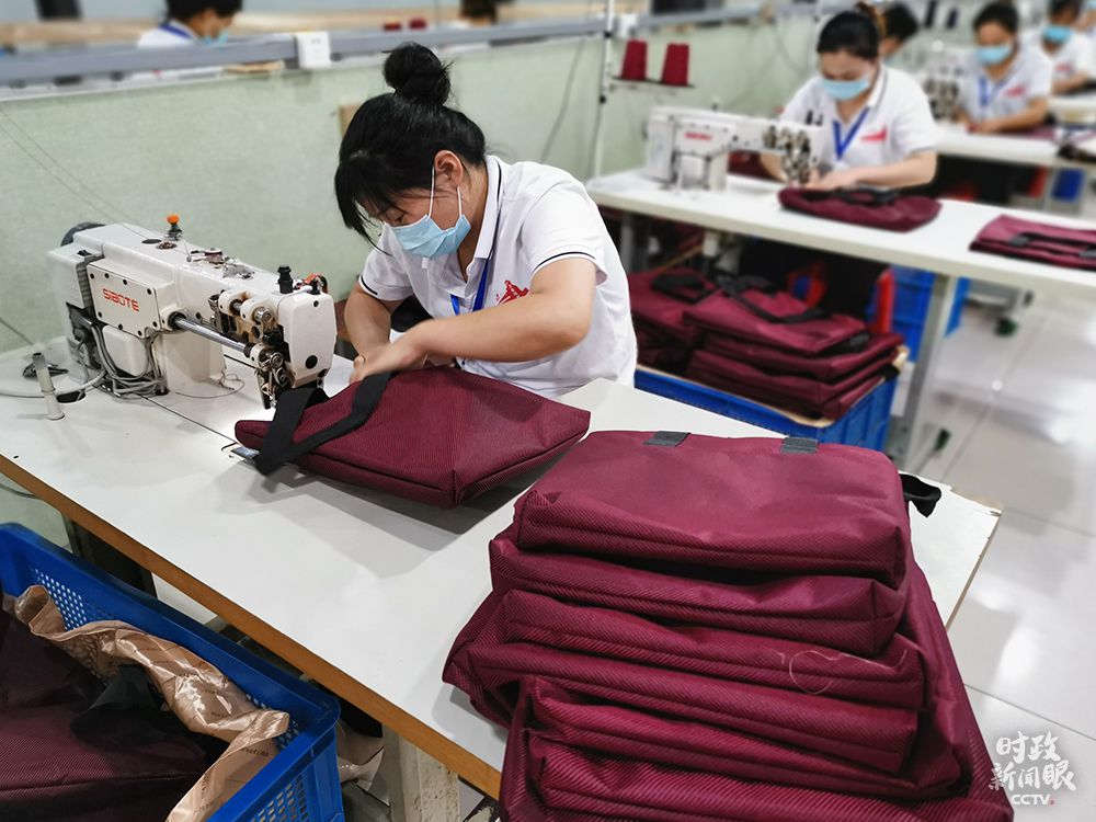 △紅亮箱包有限公司預(yù)計年產(chǎn)箱包100萬只。(總臺央視記者邢彬拍攝)