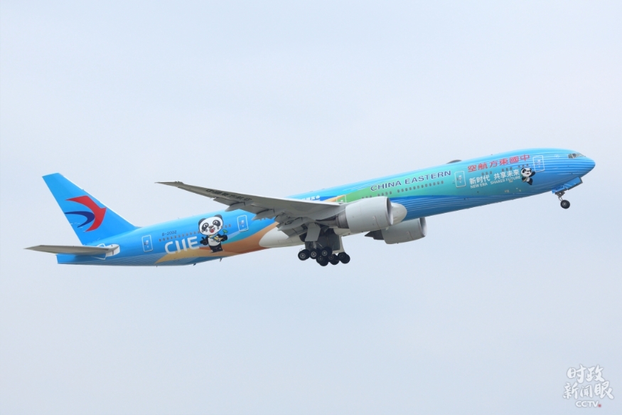 △7月2日,由東航與中國國際進口博覽局合作推出的全球首架“進博號”主題彩繪飛機正式亮相,未來將作為進博會的“空中大使”飛向全球。