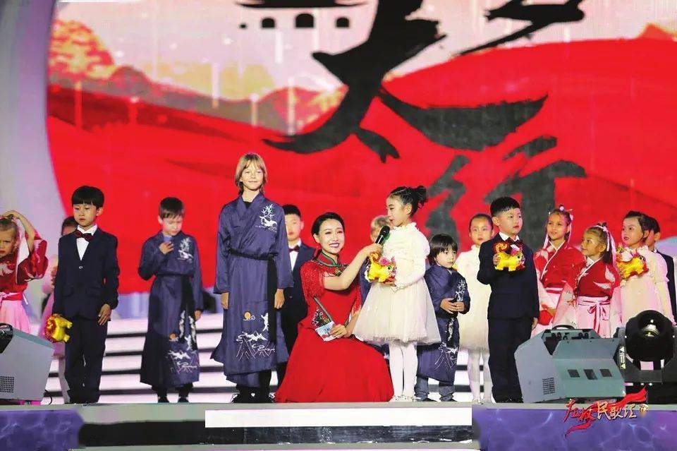 在充滿現(xiàn)代科技感的3D渲染和催人奮進的鼓聲中,開幕式進入第二篇章“追夢太行”。 太行自古天下脊。在波瀾壯闊的中國革命史上,在左權(quán)這片紅色的土地上,優(yōu)秀的中華兒女為了民族大義拋頭顱、灑熱血,在黃河岸邊、太行山上譜寫出一曲曲血與火的戰(zhàn)歌。“追夢太行”篇章旨在向先烈致敬、聽英雄心聲、唱烽火歲月,提醒人們不忘初心、牢記使命。演出現(xiàn)場,只見舞臺兩側(cè)的巖壁上硝煙滾滾、軍旗獵獵,著名歌唱家楊洪基以一首雄渾激昂的《在太行山上》,帶領(lǐng)觀眾盡情感受民族音樂的魅力和音樂帶給人們的無窮力量。特型演員王伍福(飾演朱德)和劉勁(飾演周恩來)朗誦的《太行頌歌》,瞬間將觀眾拉回到那段可歌可泣的紅色歲月。 在第三篇章“筑夢今朝”中,呂繼宏和張也的合唱《幸福中國一起走》、民族歌曲聯(lián)唱《大美中國》、世界民歌串燒《友誼地久天長》等,以及世界為左權(quán)喝彩VCR、山西及左權(quán)民歌聯(lián)唱都給觀眾留下了深刻的印象,弘揚了滿滿的正能量。 開幕式晚會分“尋夢百年”“追夢太行”和“筑夢今朝”三大篇章,通過層層遞進,在致敬民歌經(jīng)典、致敬太行精神的同時,給世人展現(xiàn)一個蓬勃發(fā)展中的左權(quán)、晉中和山西。 最令人感動的是一群盲人歌者的演唱。左權(quán)盲宣隊的主唱劉紅權(quán),帶著他的伙伴們向天而歌,以《擁護八路軍》《我們的生活充滿陽光》表達(dá)著他們對黨的感激之情和對新時代新生活的贊美,“盲藝人在舊社會無地位,是共產(chǎn)黨帶領(lǐng)我們走上革命道路,讓我們受尊重,過上幸福生活。我們雖然看不見,但發(fā)自內(nèi)心感謝共產(chǎn)黨,共產(chǎn)黨就是我們的‘天’!”他深情地說。 而當(dāng)一組外國小朋友登上舞臺,來自俄羅斯的小朋友用流利的中文為左權(quán)民歌匯送上祝福時,左權(quán)民歌匯真正成為了世界文化交流的舞臺。 …… 開幕式在歌手平安《我愛你中國》的歌聲中推向高潮。 民歌飛揚映民心