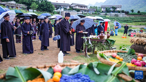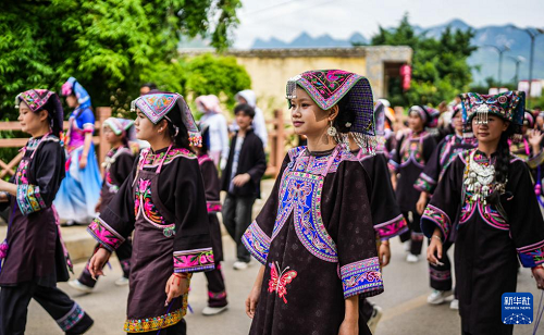 六盤水市六枝特區(qū)牂牁鎮(zhèn)的布依族群眾在進行巡游(6月29日攝)。(新華社記者 陶亮 攝)