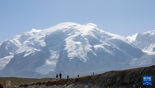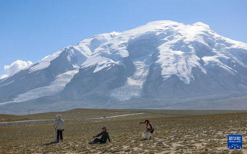 8月3日,游客在新疆塔什庫(kù)爾干塔吉克自治縣慕士塔格冰川公園游玩。(新華社記者 王菲 攝)