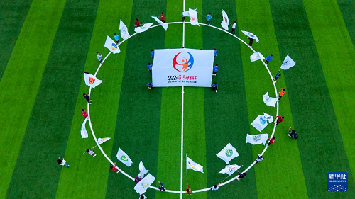 8月5日,各參賽代表隊(duì)旗幟在開幕式上入場(chǎng)(無(wú)人機(jī)照片)。(新華社記者 郎兵兵 攝)