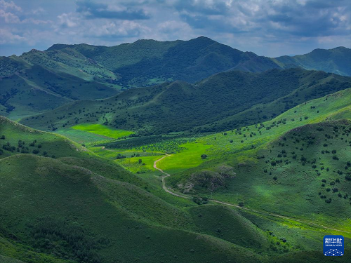 這是8月11日拍攝的內(nèi)蒙古通遼市扎魯特山地草原美景(無(wú)人機(jī)照片)。(新華社記者 連振 攝)