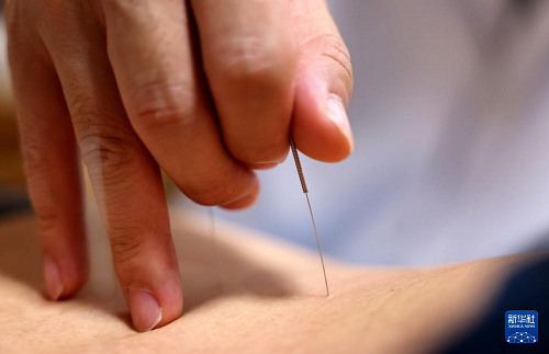8月18日,山東省棗莊市婦幼保健院的醫(yī)生為患者針灸。(新華社發(fā) 孫中喆 攝)