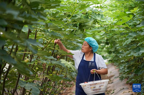 8月24日,在新泰市龍廷鎮(zhèn),果農(nóng)在采摘無(wú)花果。(新華社記者 徐速繪 攝)