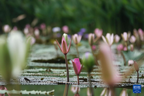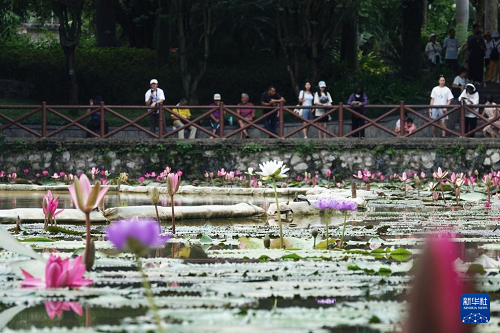 初秋時節(jié),廣西南寧市人民公園培育的900余株睡蓮陸續(xù)綻放,吸引游人前來觀賞。
