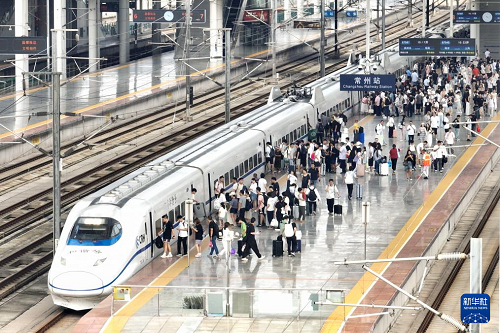 8月31日,旅客在江蘇常州火車站乘車出行(無人機(jī)照片)。(新華社發(fā) 陳暐 攝)