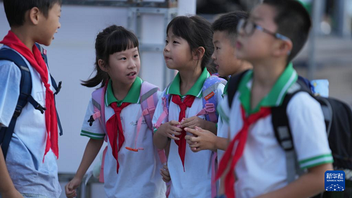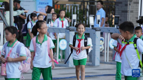 9月1日,貴陽市實(shí)驗(yàn)小學(xué)未來方舟分校的學(xué)生走進(jìn)校園。(新華社記者 陶亮 攝)