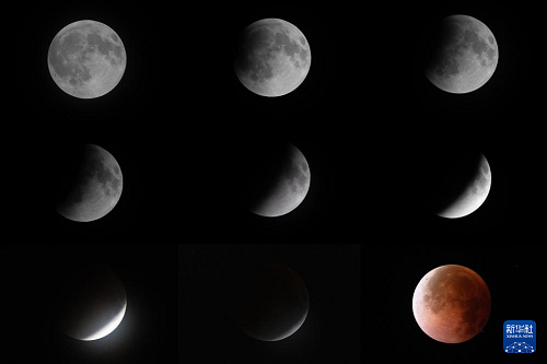 這是月全食過(guò)程(拼版照片,9月7日至8日攝)。(新華社記者 姜帆 攝)