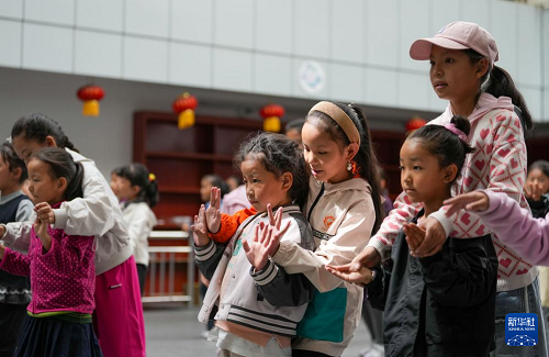 9月11日,在拉薩市實驗小學,孩子們在練習藏戲。(新華社記者 晉美多吉 攝)