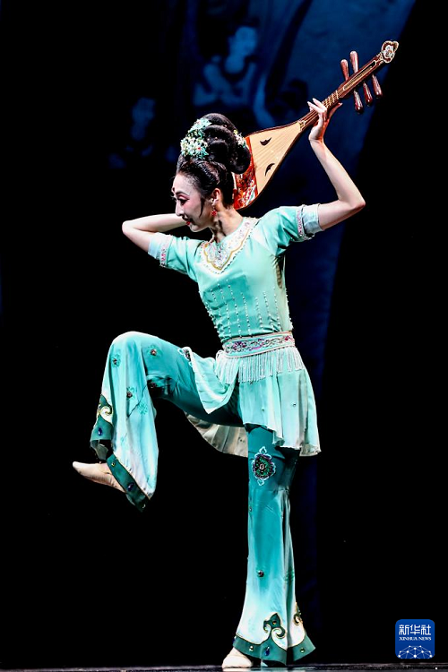 9月20日晚,演員在敦煌大劇院表演新版《絲路花雨》。(新華社記者 郎兵兵 攝)