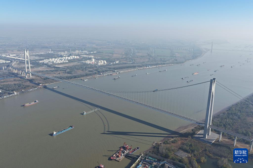 11月26日拍攝的南京新生圩長江大橋(無人機照片)。(新華社記者 毛俊 攝)