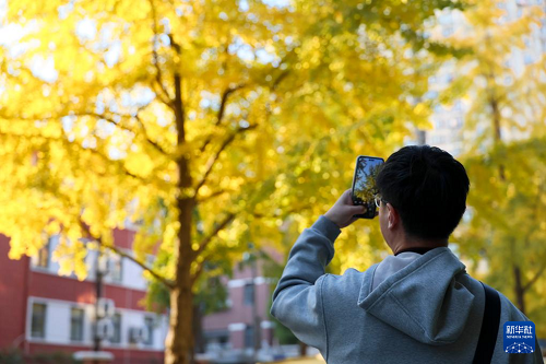 11月30日,市民在上海市黃浦區(qū)局門(mén)路拍攝銀杏。(新華社記者 王翔 攝)
