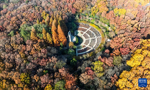 11月30日拍攝的江蘇南京鐘山風(fēng)景名勝區(qū)音樂(lè)臺(tái)初冬景觀(無(wú)人機(jī)照片)。(新華社發(fā) 孫忠南 攝)