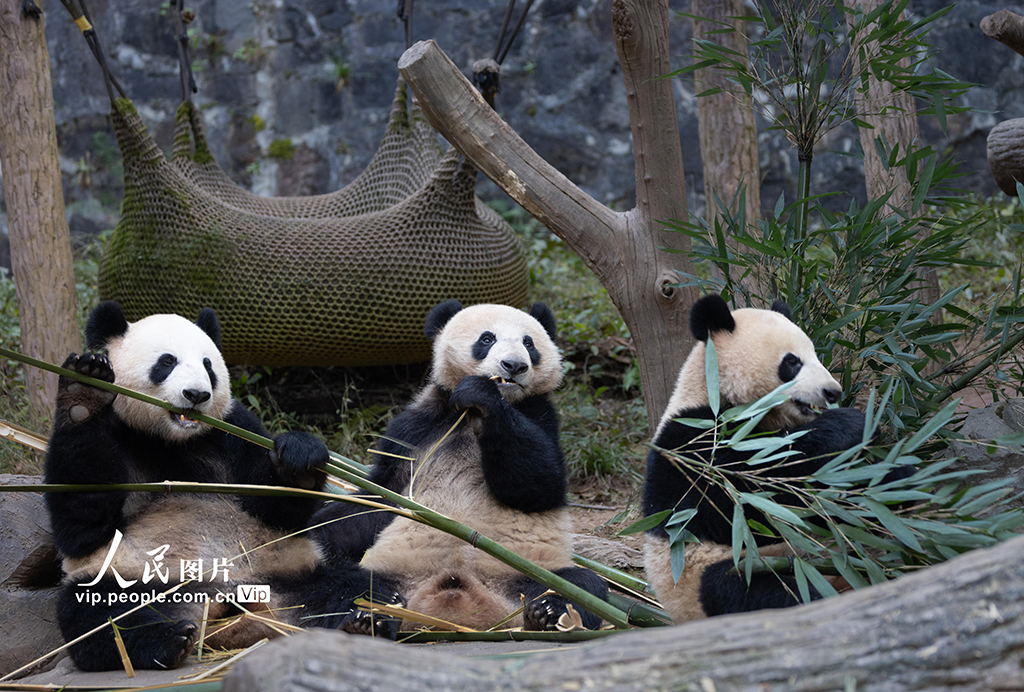2025年12月1日,四川省都江堰市中國大熊貓保護研究中心都江堰青城山基地,大熊貓享用美食、嬉戲玩耍,憨態(tài)可掬,惹人喜愛。陳先林?jǐn)z(人民圖片網(wǎng))