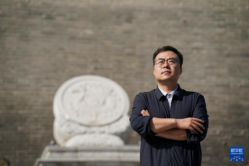 趙彬在西安城墻永寧門(mén)內(nèi)(2025年9月12日攝)。(新華社記者 邵瑞 攝)