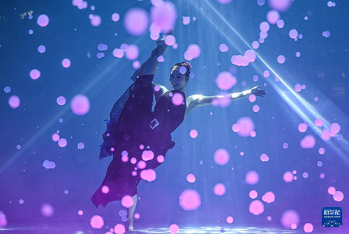 1月14日,舞者在2026中國極限舞蹈表演賽期間進(jìn)行水下舞蹈表演。(新華社記者 蒲曉旭攝)
