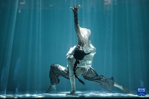 1月14日,舞者在2026中國極限舞蹈表演賽期間進(jìn)行水下舞蹈表演。(新華社記者 蒲曉旭 攝)