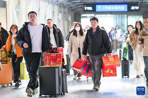 2月13日,旅客從南京火車站出行。(新華社發(fā) 楊素平 攝)