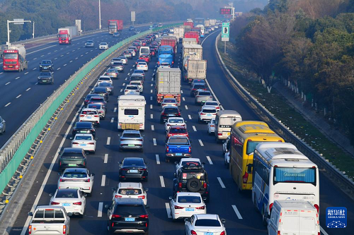 2月13日拍攝的京滬高速江蘇無錫段的車流。(新華社發(fā) 還月亮 攝)