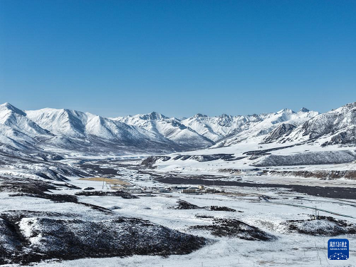 3月15日,青海省果洛藏族自治州瑪沁縣雪后迎來晴好天氣,群山被白雪覆蓋,與藍天相映,構(gòu)成一幅壯美的高原春日圖景(無人機照片)。(新華社記者 張龍 攝)