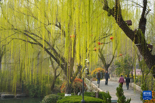近日,山東省濟南市氣溫回升,大明湖畔的柳樹披上新綠,吸引游客前來踏春游覽。大明湖位于濟南市區(qū),湖岸種有大量柳樹,以“四面荷花三面柳,一城山色半城湖”的風(fēng)光聞名。