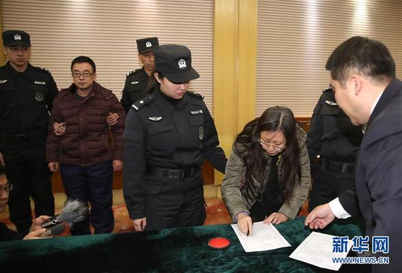 2月6日,在北京首都機場,“百名紅通”嫌犯付耀波(后)、張清曌(前)依次在逮捕證上簽字。當日,在中央追逃辦統(tǒng)一部署下,在外交部、公安部及我駐巴巴多斯、格林納達等駐外使館的大力協(xié)助下,遼寧省追逃辦組織協(xié)調(diào)檢察、公安等部門,成功將遠逃至加勒比海島國圣文森特和格林納丁斯的“百名紅通”第39號嫌犯付耀波、第41號嫌犯張清曌同時抓獲歸案。新華社記者殷剛攝