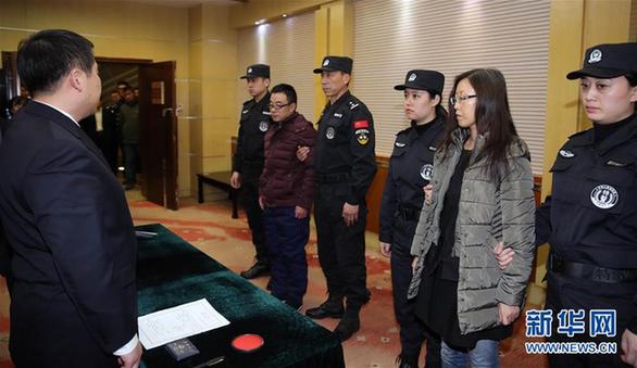 2月6日,在北京首都機場,檢察官向“百名紅通”嫌犯付耀波(右五)、張清曌(右二)宣讀相關法律文書。當日,在中央追逃辦統(tǒng)一部署下,在外交部、公安部及我駐巴巴多斯、格林納達等駐外使館的大力協(xié)助下,遼寧省追逃辦組織協(xié)調(diào)檢察、公安等部門,成功將遠逃至加勒比海島國圣文森特和格林納丁斯的“百名紅通”第39號嫌犯付耀波、第41號嫌犯張清曌同時抓獲歸案。新華社記者殷剛攝