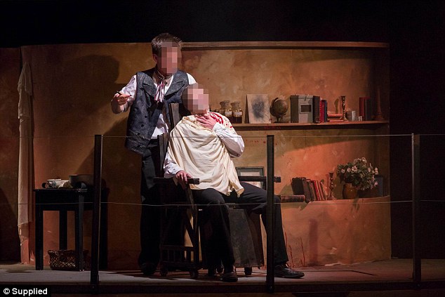 這周三,新西蘭的一個(gè)私立學(xué)校的劇團(tuán)也排了這部劇,然而正是演出的時(shí)候,這個(gè)割喉場景出現(xiàn)了意外。這兩名扮演受害者的學(xué)生演員被當(dāng)場割喉,血濺舞臺(tái)。因?yàn)榘凑站巹〉牧鞒?,兩名受害者被割喉后就被通過椅子下面的機(jī)關(guān)門送到了舞臺(tái)下,整部劇之后還照常演出。臺(tái)下的不少觀眾之后接受采訪時(shí)表示,他們當(dāng)時(shí)還以為劇組用的是假血,還在感嘆他們做效果做的如此逼真。事后才知道,那些都是真血。