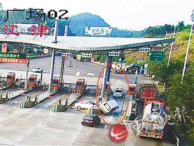 8月25日凌晨,民警接到線索,嫌疑車輛再次出現(xiàn)。民警馬上在渝瀘高速江津沿線進(jìn)行蹲守。早上7時(shí)42分許,嫌疑車輛緩緩駛?cè)胗鍨o高速G93江津收費(fèi)站,埋伏在收費(fèi)亭內(nèi)的民警,試圖在嫌疑人停車?yán)U費(fèi)時(shí)將其控制。不料對(duì)方見(jiàn)勢(shì)不妙,啟動(dòng)車輛準(zhǔn)備沖卡逃跑。這時(shí),另一隊(duì)蹲守在收費(fèi)站外的民警立即將警車開(kāi)到前方,把嫌疑車輛堵在收費(fèi)車道內(nèi)。嫌疑人駕車對(duì)警車進(jìn)行多次強(qiáng)烈撞擊,企圖撞開(kāi)警車后逃竄,但均未得逞。隨后,嫌疑人又猛烈倒車,企圖撞開(kāi)后方社會(huì)車輛。