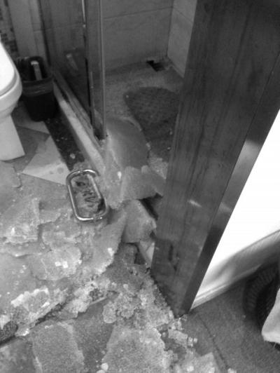 酒店衛(wèi)生間玻璃門破碎。當(dāng)事人供圖