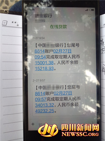 2月27日上午10時(shí)左右,羅大媽來(lái)到瀘州大山坪某銀行取定期存款?!斑@張卡是工資卡,經(jīng)常支取,究竟活期有多少余額,我也不清楚,但應(yīng)該不多。”羅大媽告訴四川新聞網(wǎng)記者,自己有兩張定期存折,一張是1.5萬(wàn)的,另一張是9萬(wàn)。