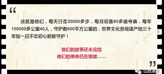 從即日起我們將對參加 第二屆消防微電影評選活動的影片進(jìn)行展播 接下來就讓我們一睹為快吧! 優(yōu)秀作品: 作品名稱:《守護(hù)》 推薦單位:忻州市公安消防支隊(duì) 內(nèi)容簡介:該片以守護(hù)為主題,以傳承為主線,以現(xiàn)任山西忻州五臺山消防大隊(duì)工程師劉川為第一人稱視角,利用紀(jì)實(shí)跟拍的手法,通過對以劉川為代表的五臺山消防大隊(duì)官兵在消防監(jiān)督檢查、消防執(zhí)勤保衛(wèi)、日常工作生活等方面點(diǎn)點(diǎn)滴滴的真實(shí)紀(jì)錄,向觀眾展示了五臺山消防官兵在長期默默守護(hù)五臺山600平方公里的世界文化景觀遺產(chǎn)地和數(shù)十座文物古建筑消防安全中的辛勤付出和無私奉獻(xiàn),也讓觀眾了解了30多年來深深根植于每一代五臺山消防人心中的那份不忘初心、不畏艱辛、舍己奉公、代代傳承的五臺山消防精神。