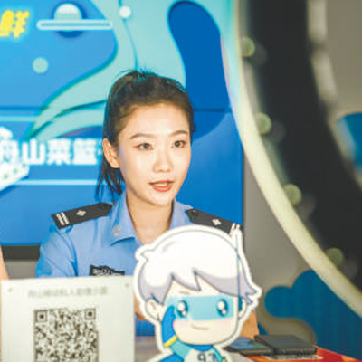 浙江省舟山市公安局反詐中心民警通過網(wǎng)絡(luò)直播傳授電信網(wǎng)絡(luò)詐騙防范知識。鄒訓勇攝(人民視覺)