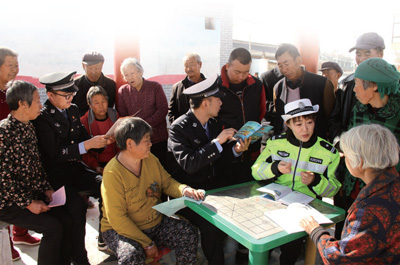 山西省靈丘縣公安局民警深入鄉(xiāng)村開展防范電信網(wǎng)絡(luò)詐騙宣傳。劉少貝攝