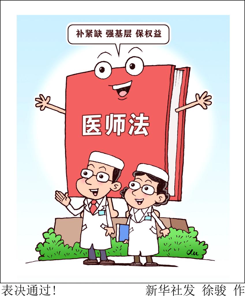 醫(yī)師是護(hù)佑人民健康的守門人。十三屆全國(guó)人大常委會(huì)第三十次會(huì)議2021年8月20日表決通過的醫(yī)師法,于2022年3月1日起施行。新華社發(fā) 徐駿 作