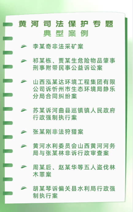 在3月9日“保護母親河日”之際,為深入貫徹黨的二十大精神,深入踐行習(xí)近平生態(tài)文明思想和習(xí)近平法治思想,在法治軌道上服務(wù)保障黃河流域生態(tài)保護和高質(zhì)量發(fā)展,忻州市中級人民法院現(xiàn)將八個黃河司法保護專題典型案例予以發(fā)布。這批案例涉及黃河及汾河環(huán)境資源審判刑事、民事、行政及公益訴訟等多個領(lǐng)域,集中體現(xiàn)了忻州市兩級法院環(huán)境資源審判的鮮明特色和職能作用,全面展示了忻州法院以最嚴格制度最嚴密法治保護黃河生態(tài)環(huán)境的擔(dān)當(dāng)作為。