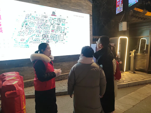 在涌動(dòng)的人流中,一抹“志愿紅”格外醒目。在古城的各個(gè)區(qū)域,法院干警身著統(tǒng)一的服裝,熱情地為游客拍照、打卡、掃碼,宣傳介紹古城的旅游景點(diǎn),還為游客提供路線指引、問題解答、失物協(xié)尋等幫助,古城內(nèi)隨處可見他們忙碌的身影。