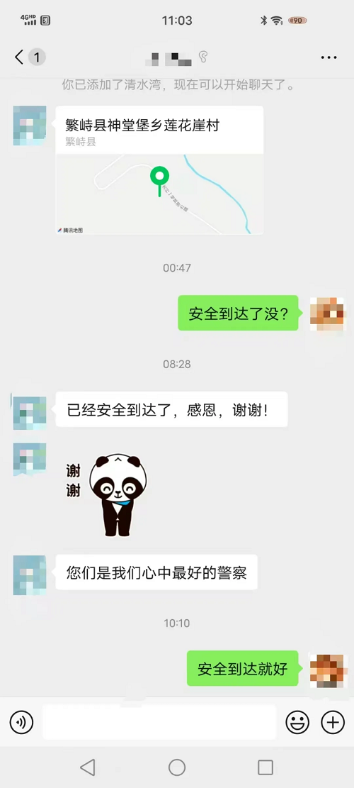 接到報(bào)警后,神堂堡派出所民警迅速通過電話聯(lián)系報(bào)警人,得知車上共有七人,多為婦女兒童,民警首先安撫游客情緒,并在確定具體地點(diǎn)后,立即與神堂堡交警中隊(duì)民警驅(qū)車趕往事發(fā)地。到達(dá)現(xiàn)場(chǎng)后,民警了解到,報(bào)警人張某與家人朋友自駕前往五臺(tái)山旅游,開到蓮花崖大峽谷山區(qū)路段時(shí)由于路面有冰導(dǎo)致車輛打滑沖出路面,車輛正被困在一處斜坡處,距離前面的深溝只有一米左右,進(jìn)退兩難,無法動(dòng)彈。此時(shí),車上幾名游客已凍得瑟瑟發(fā)抖,情況不容樂觀。民警們第一時(shí)間制定救援措施,他們不畏嚴(yán)寒、相互配合,經(jīng)過長(zhǎng)時(shí)間的努力,終于將被困車輛從冰面推到了無冰路段。車輛脫困,游客對(duì)民警們的及時(shí)救援表示了由衷的感謝,緊緊握住民警的手,激動(dòng)地說:“非常感謝警察同志的幫助,您們是我們心中最好的警察!”