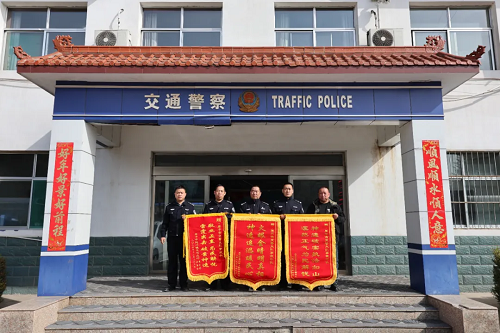 3月13日,原平市同川鎮(zhèn)上社村的郝先生、閆莊村的樊先生l來到原平市公安局交警大隊事故中隊,將印有“火眼金睛明真相 神速追逃暖民心”“神速破案執(zhí)法如山 凜然正氣為民解憂”的錦旗送到民警手中,以表達(dá)對交警心系群眾、履職盡責(zé)、迅速破案的感激之情。